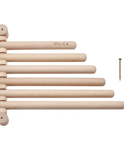 Mensola da parete antica in faggio color crema con 6 binari - 39x31,5x3,5 cm