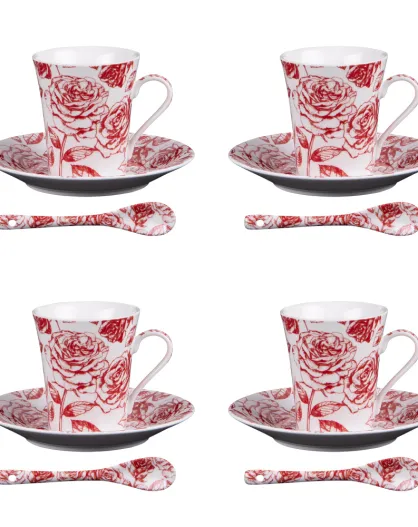 Set di 4 tazze da tè miste con cucchiai rossi Louise - 9x9x8cm