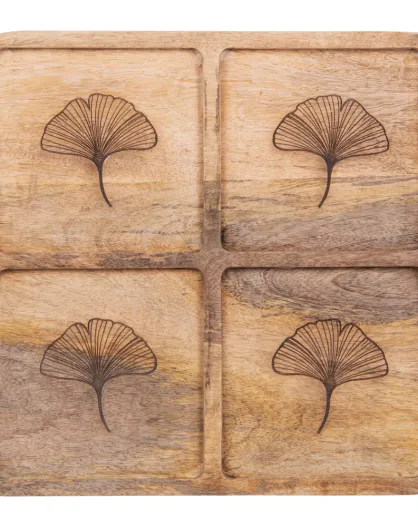 Piatto da aperitivo Brown Ginkgo a 4 scomparti - 35x35x2cm