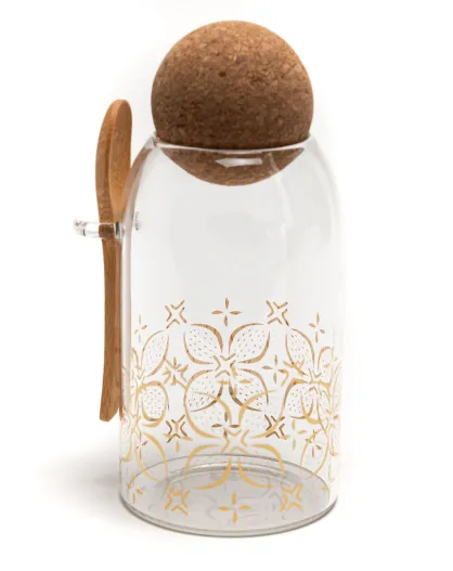 Barattolo portaoggetti Alix con cucchiaio trasparente/cristallo - 19,50x9 cm