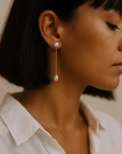 Orecchini Teri placcati in oro con perla coltivata bianca