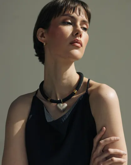 Collana a cuore Judith in oro bianco e nero placcato