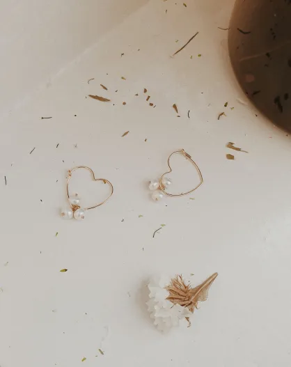 Orecchini a cerchio a cuore placcati in oro con perle coltivate bianche