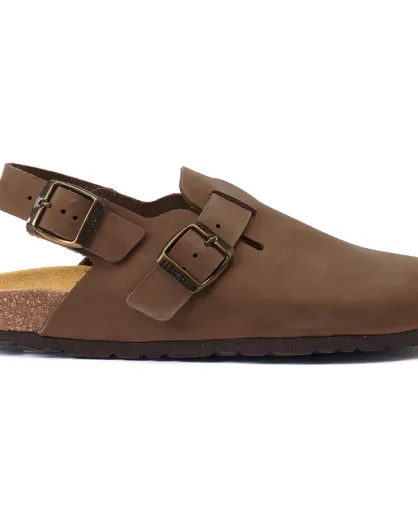 Zoccoli Oscar in pelle di velluto marrone scuro