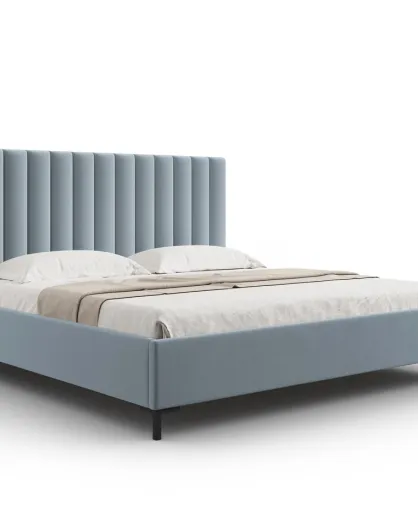 Letto a bauletto Apollo azzurro chiaro con testiera in velluto - 220x170x130 cm