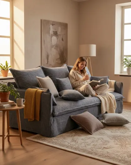 Divano in lino lavato blu ardesia - 210x100x80 cm