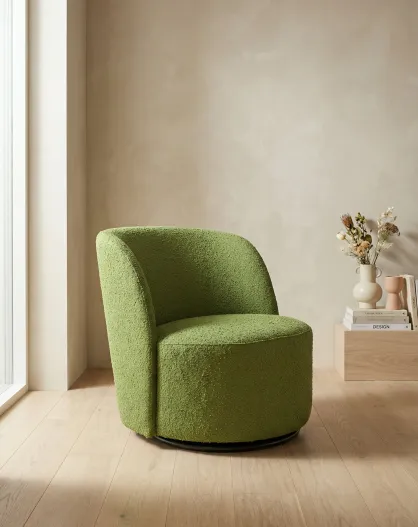 Poltrona girevole in tessuto riccio verde oliva - 71x74x77 cm