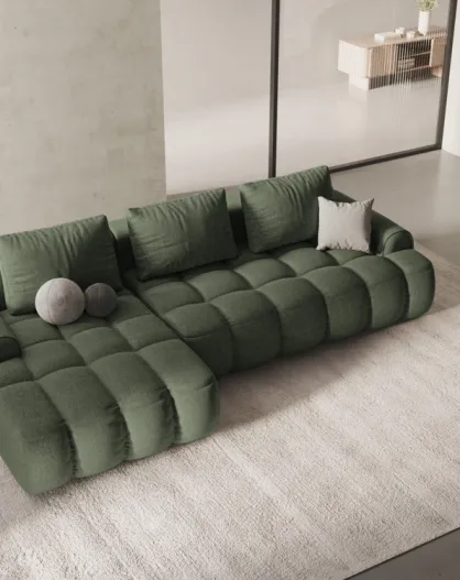 Divano angolare sinistro trasformabile con contenitore 3 posti verde oliva scuro - 275x142x84 cm