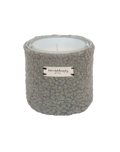Candela profumata della durata di circa 40 ore con rivestimento in salvia moumoute - H8 — ø 9 cm