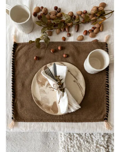 Set di 2 tovagliette in cotone e lino color bronzo - 45x38 cm