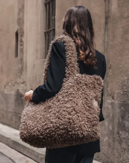 Borsa in pelliccia sintetica marrone - 35x45x17 cm