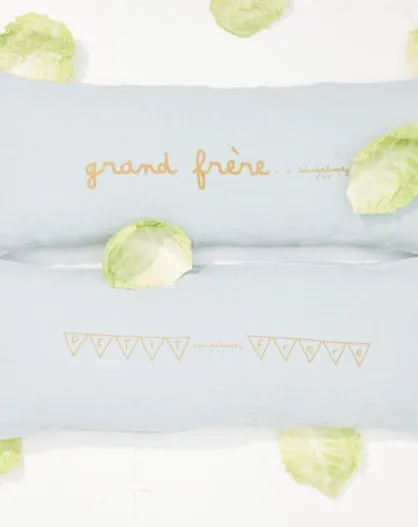 Cuscino in lino con messaggio blu - 30x70 cm