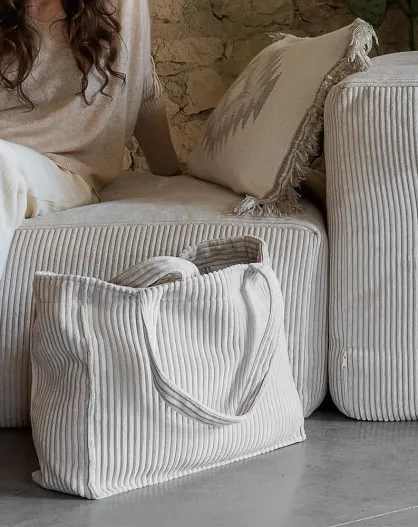 Borsa in velluto a coste beige - 35x45x17 cm