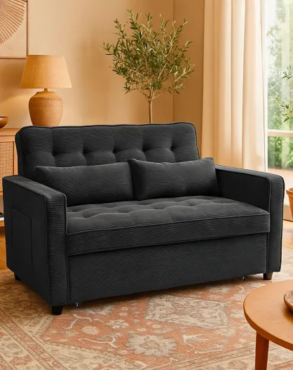 Divano letto Komaria nero a 2 posti in velluto a coste - 133x94x87 cm