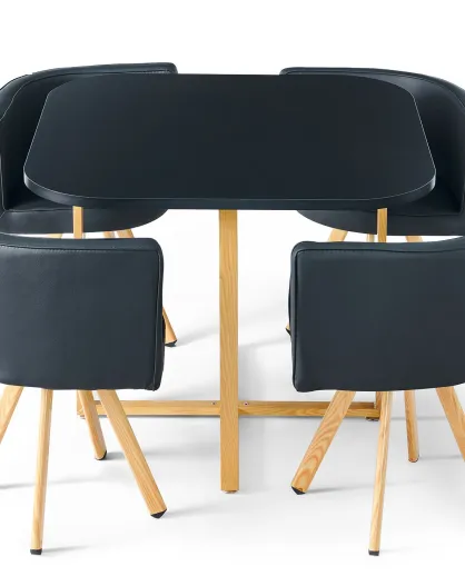 Set tavolo Oslo e 4 sedie scandinave nere - 90x90x75 cm