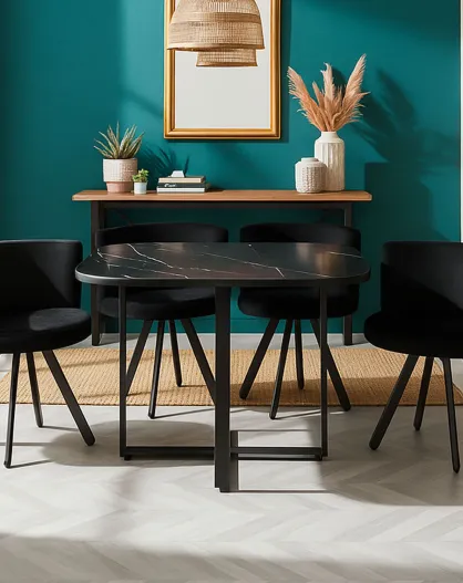 Set tavolo e 4 sedie Oslo effetto marmo e velluto nero - 90x90x75 cm