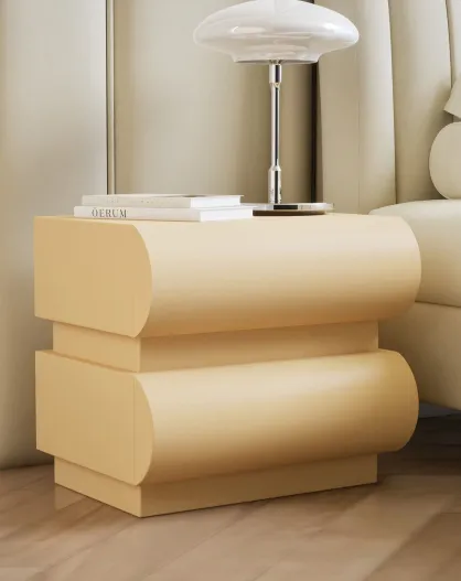 Comodino con 2 cassetti arrotondati mezade beige - 45x35x40 cm
