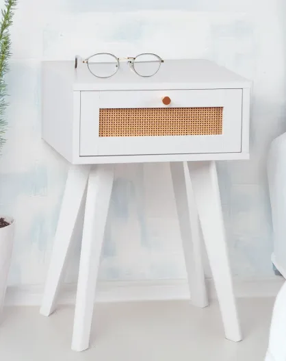 Comodino a 1 cassetto con canna dalgora bianca - 40x30x60 cm