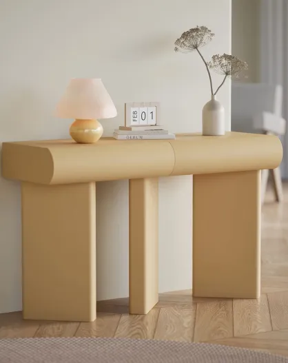 Consolle di design a 2 cassetti con gambe inclinate Mezade beige - 121x38x75 cm