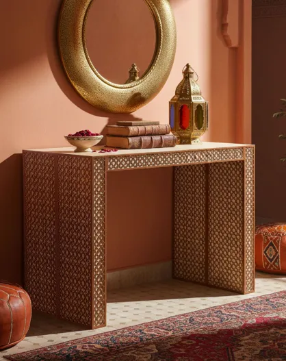 Consolle allungabile Nassau Morocco design Moucharabieh beige/bronzo - 100x50x75 cm