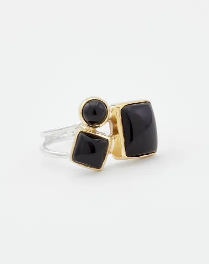 Anello Louvre in onice nero in argento e ottone