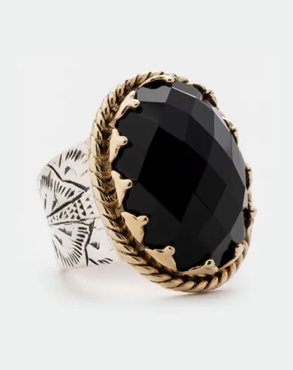 Anello in argento e ottone con onice nera R5988