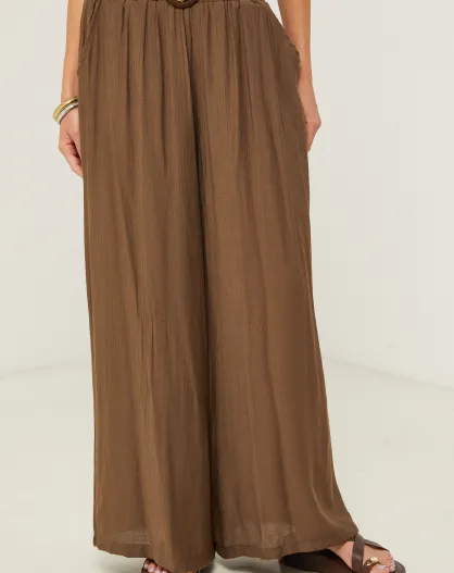 Pantaloni color moka con frange