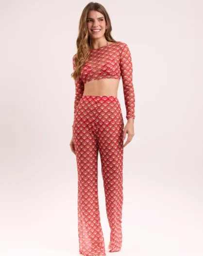 Pantaloni da spiaggia rossi Floral Scales Lana