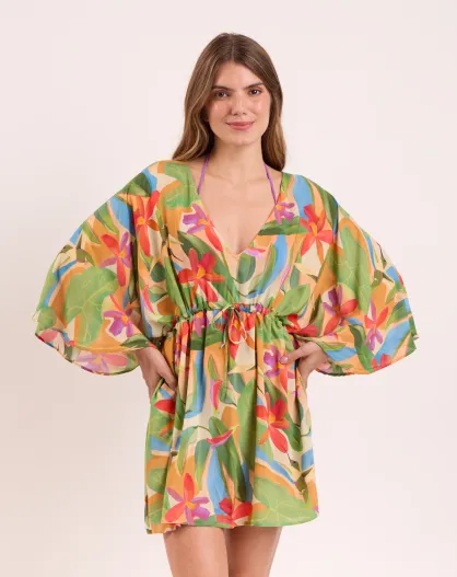 Caftano da spiaggia verde Tropical Bel