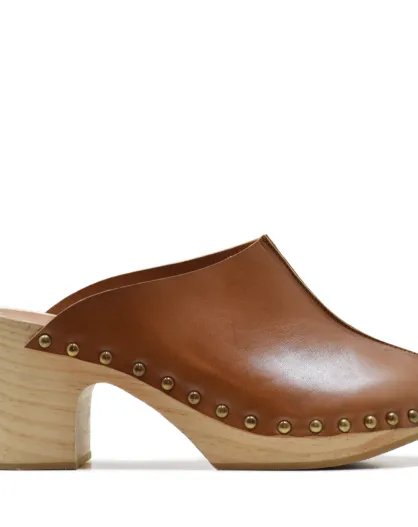 Zoccoli Zueco in legno naturale e pelle - - Tacco: 5,5 cm