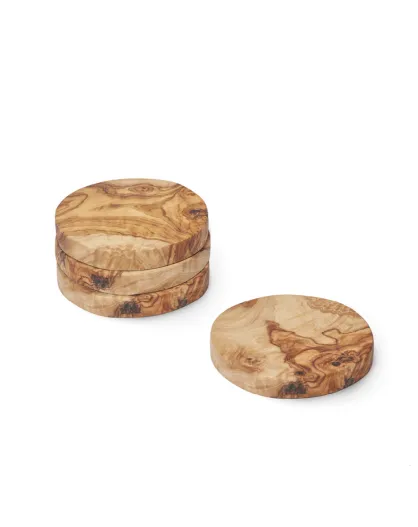 Set di 4 sottobicchieri fatti a mano in legno di ulivo -9x1,4 cm