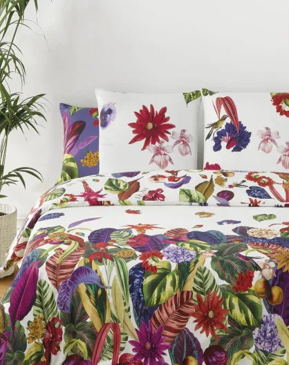 Copripiumino + 2 federe in raso di cotone Jardin Tropical Multico - 240x220 cm + 2x (63x63 cm)