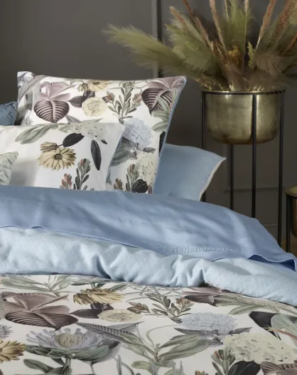 Copripiumino + 2 federe Garden in raso di cotone blu chiaro - 260x240 cm + 2x (63x63 cm)