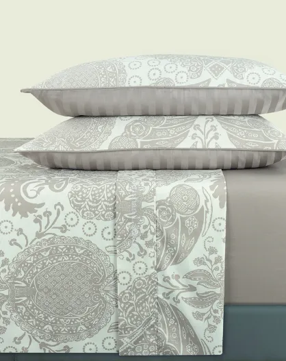 Set lenzuola in raso di cotone tortora Arles + 180x200x30 cm + 2x (63x63 cm)
