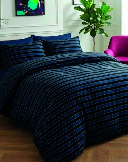 Copripiumino + federa in cotone satinato Eclipse blu scuro - 260x240 cm + 2x (63x63 cm)