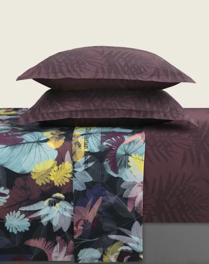 Set lenzuola in raso di cotone Areca prugna + 180x200x30 cm + 2x (50x70 cm)