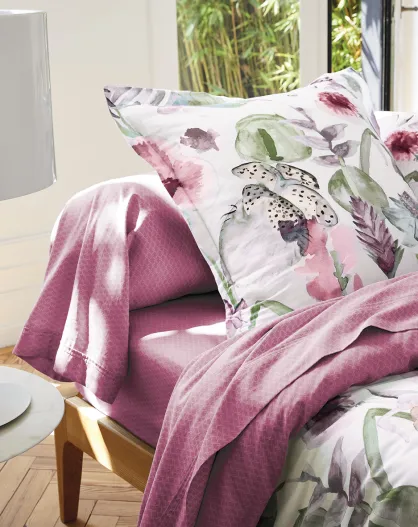 Lenzuolo piano Garden Micro in raso di cotone lampone