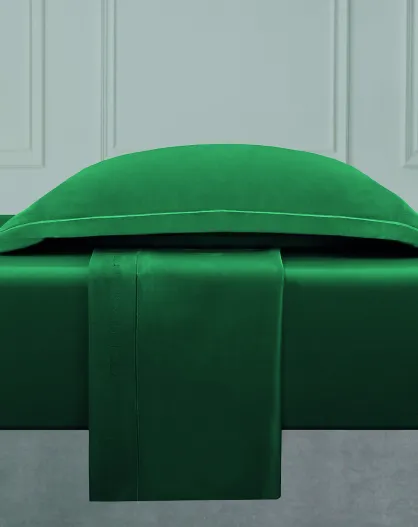 Set di lenzuola in raso di cotone tinta unita 1 baratta verde 02 + 160x200x30 cm + 2x (50x70 cm)