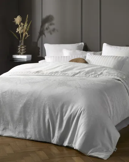Lenzuolo piatto Arles in raso di cotone intrecciato Jacquard bianco