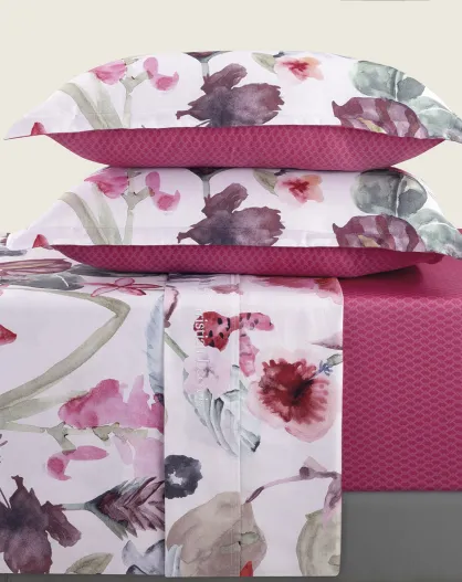 Set lenzuola in raso di cotone color lampone esotico + 2x (90x200x30 cm) + 2x (50x70 cm)