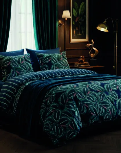 Copriletto Calathea in raso di cotone blu scuro - 220x250 cm